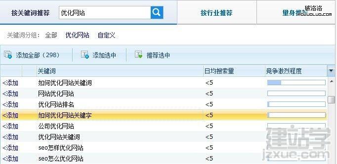 推廣助手本來是幫競價用戶來推薦關(guān)鍵詞的,只要你輸入一個關(guān)鍵詞,馬上就會出來很多以這個關(guān)鍵詞為核心詞的關(guān)鍵詞,其中就有大量的長尾關(guān)鍵詞,而且都沒還帶有流量搜索數(shù)據(jù)以及競爭激烈程度圖,這個更有利于我們得到精確的數(shù)據(jù),可以選擇一些大流量的長尾詞而競爭小的來做。