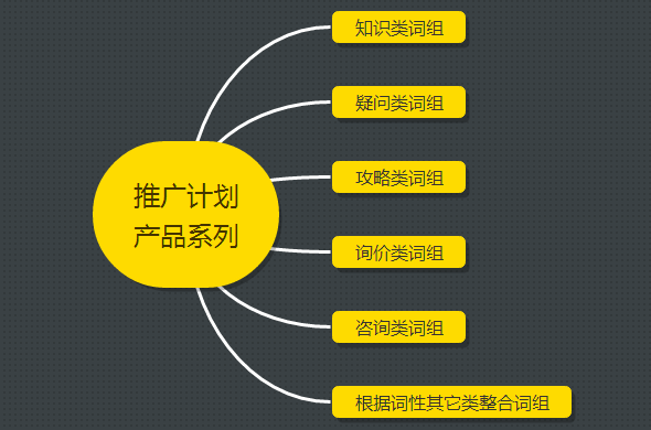 如上圖,針對一個具體的產(chǎn)品小編劃分了知識類詞組、疑問類詞組、攻略類詞組、詢價類詞組、咨詢類詞組以及其他類型的詞組,其實不管如何劃分,只要是想做到精細化運作的用戶均需要根據(jù)詞性有針對性的構(gòu)建關(guān)鍵詞組,因為一個推廣組里的關(guān)鍵詞整合了一類用戶的核心訴求,推廣組建好之后,后期的創(chuàng)意描述、落地頁面的選擇都會圍繞著用戶的真實需求進行設(shè)定,以保證用戶點擊進去之后能夠最大化的滿足用戶需求,促進轉(zhuǎn)化。
